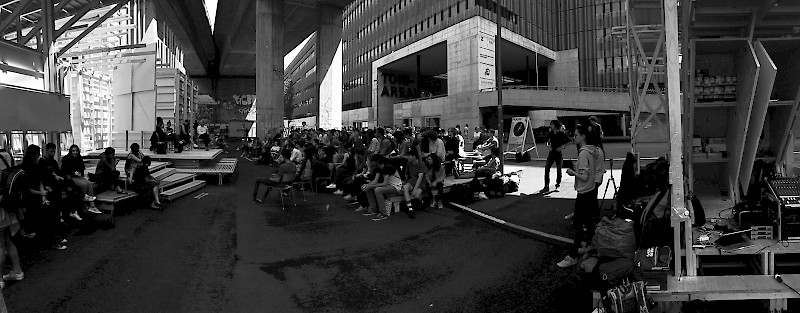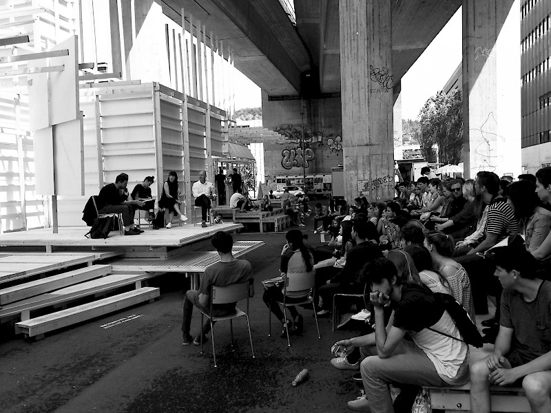 Der Raum unter der Brücke wird zum temporären Auditorium